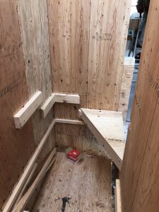 某ハウスメーカー深基礎におけるつけ框 親方得意の斜め加工